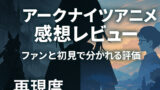 アクションや作画の派手さでまず惹きつけられますが、物語や世界観の裏側にある哲学的メッセージや社会的背景が、視聴後に深い余韻を残します。