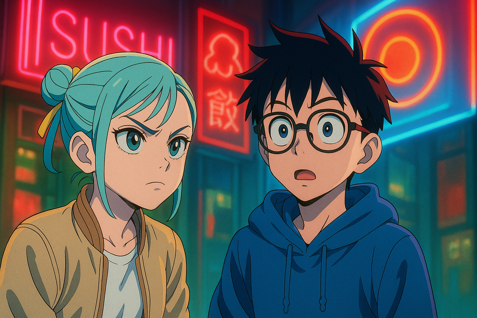 背景のネオンサイン、キャラの表情、光の色温度――1枚の絵が、アニメの“体温”をすべて語っている。