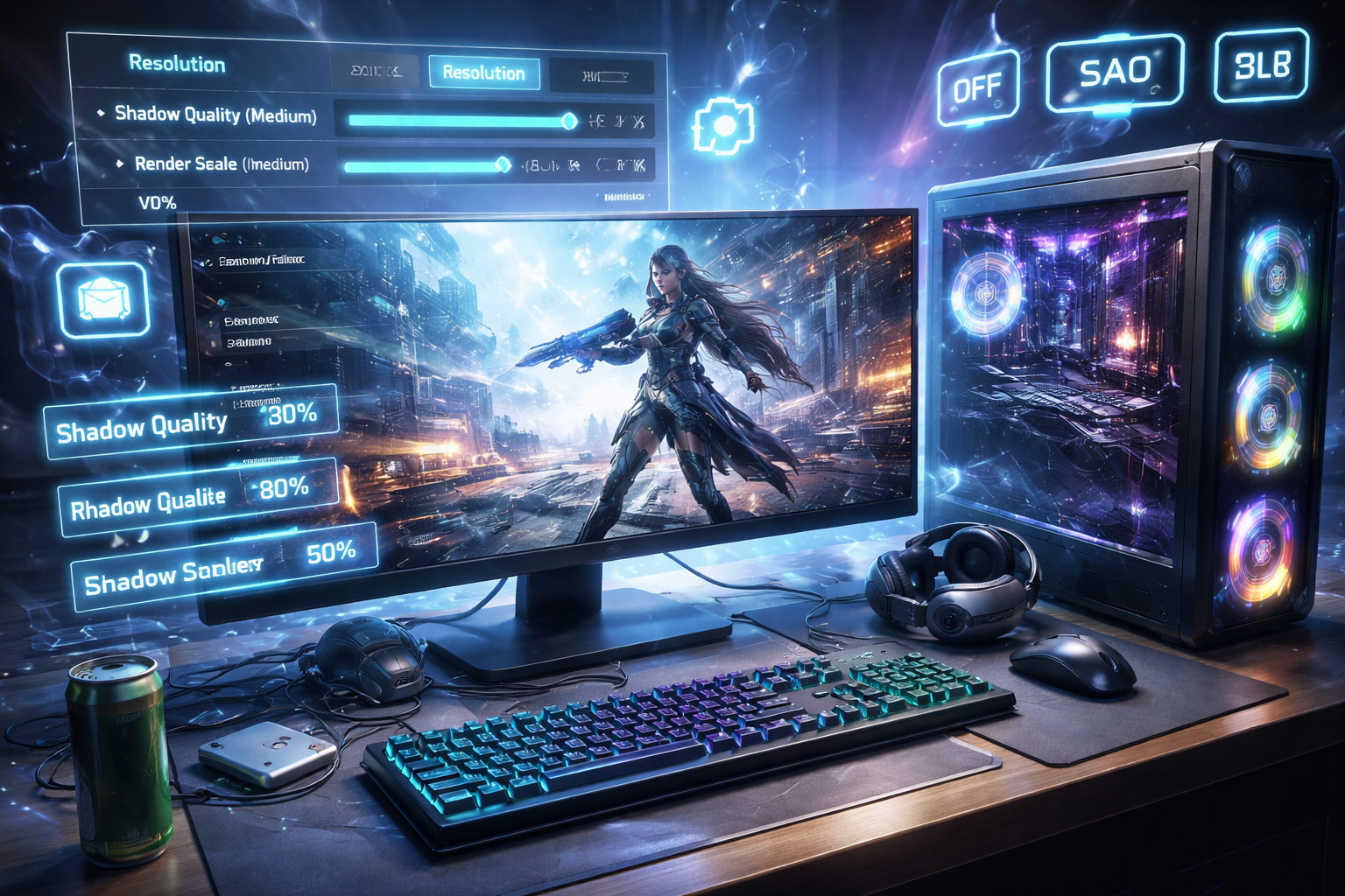 平均FPSが低い「重い」症状は、まずGPUの描画負荷を削るのが最短です。特に次の3つは効きが大きく、画質の満足度を落としにくい順番でもあります。