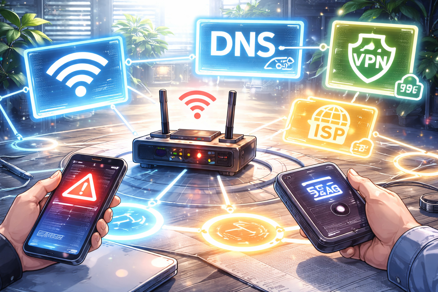 回線が原因のときの対処(Wi-Fi/4G/ISP/DNS/VPN)