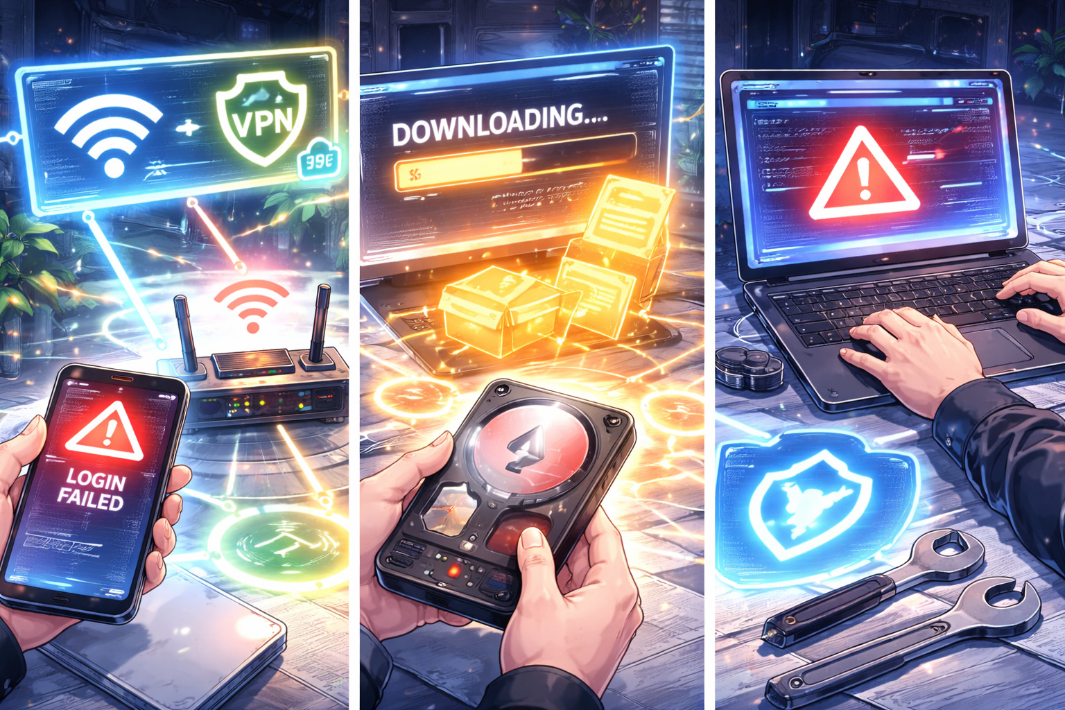 - ログインで止まる:サーバー混雑 or 回線(DNS/VPN/ISP)寄り