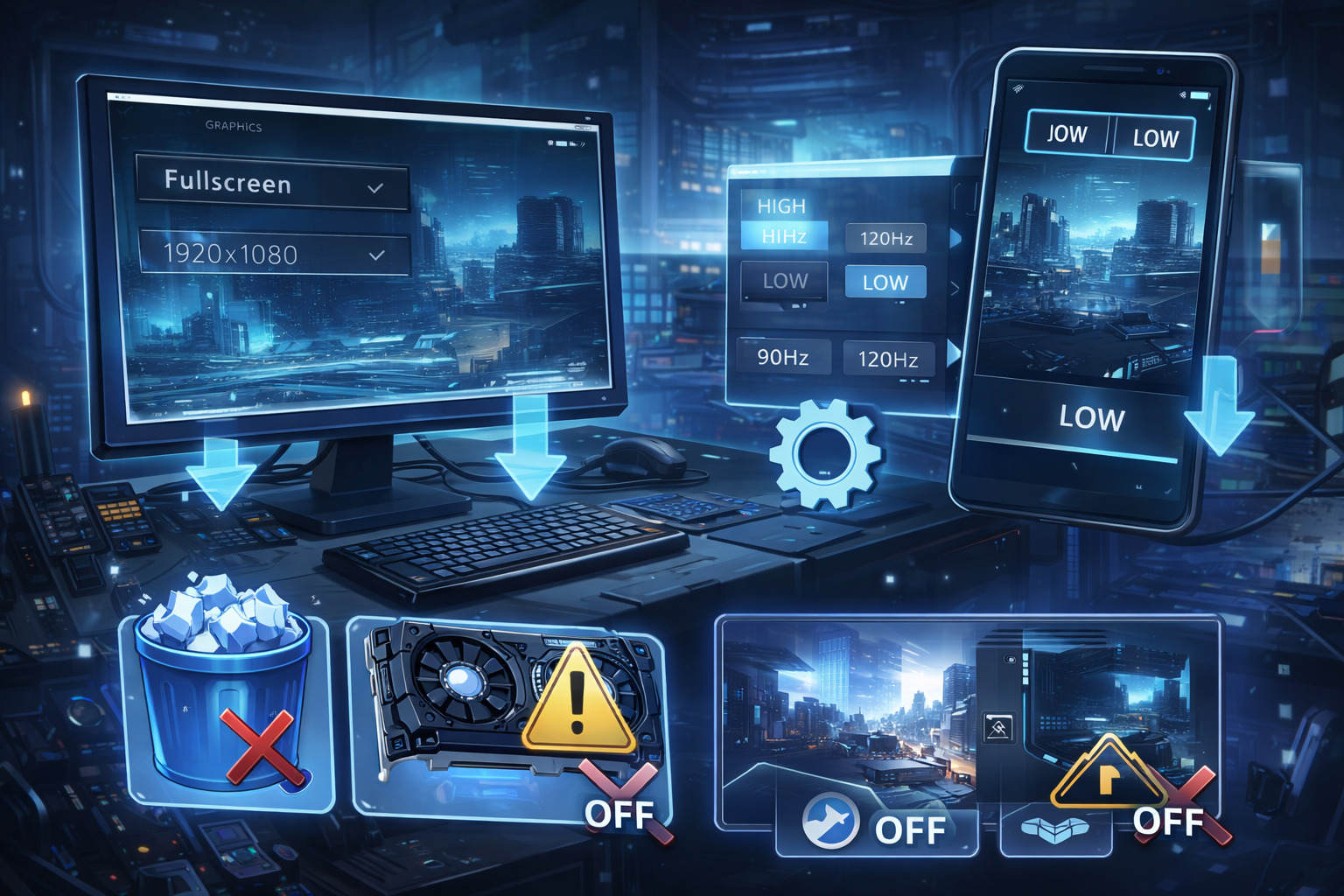 可能なら画質を「低」に寄せ、高リフレッシュ(90/120Hz)や