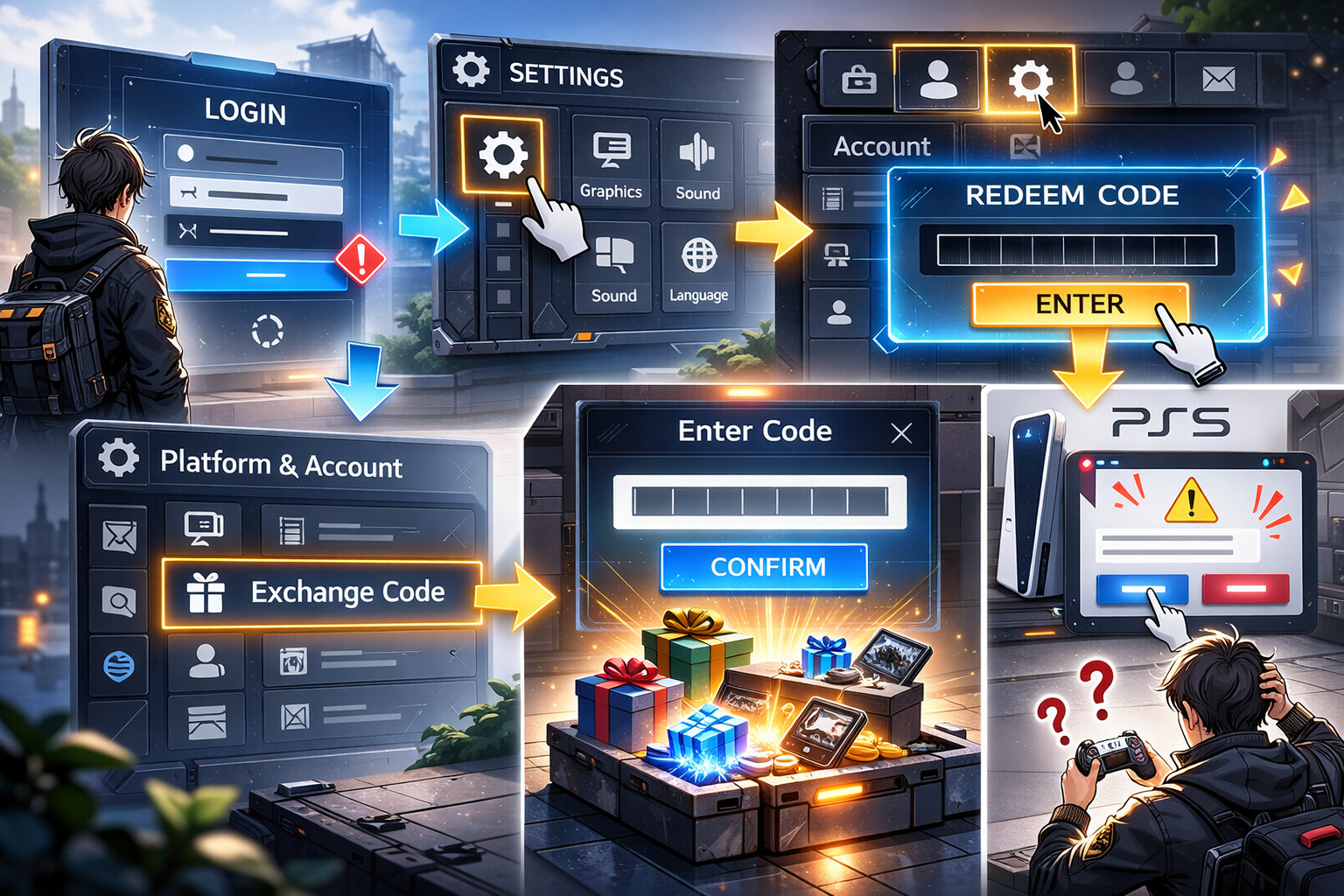 - 入力欄・引き換えを示すUI(Exchange / Code / Redeem)