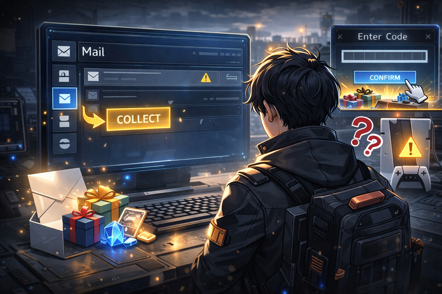 コード入力が通ったあとに不安になりやすいのが「どこで受け取るのか分からない」問題です。一般的には、ゲーム内のメールボックス/受け取り画面などに反映されますが、反映までに時間がかかるケースもあります。