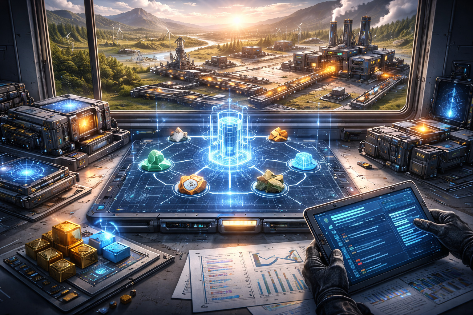 - 優先順位:エリア拡張 → 倉庫連結ハブ → 電力基盤 → 採掘 → 製錬 → 組立 → 取引(派遣)