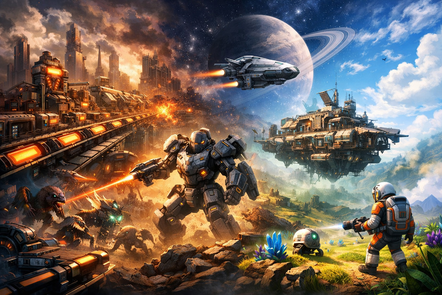 宇宙を旅して新しい惑星に降り立ち、資源を集め、基地を築き、設備を整え、さらに新しい星へ向かう。